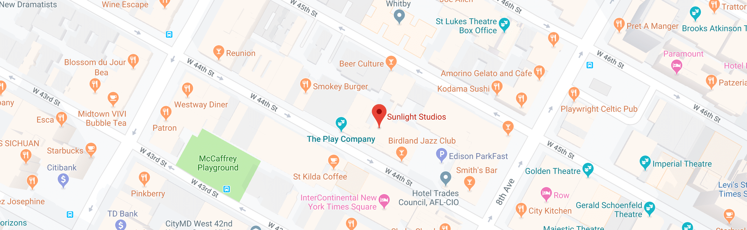 Sunlight Studios is conveniently located at 321 West 44th Street, Suite 202 right off Times Square